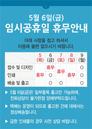 5월6일(임시공휴일) 휴무안내