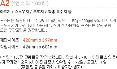| ▶ A2 (420 x 600) - 아트지/스노우지 | 디자인비 : 80,000원 |